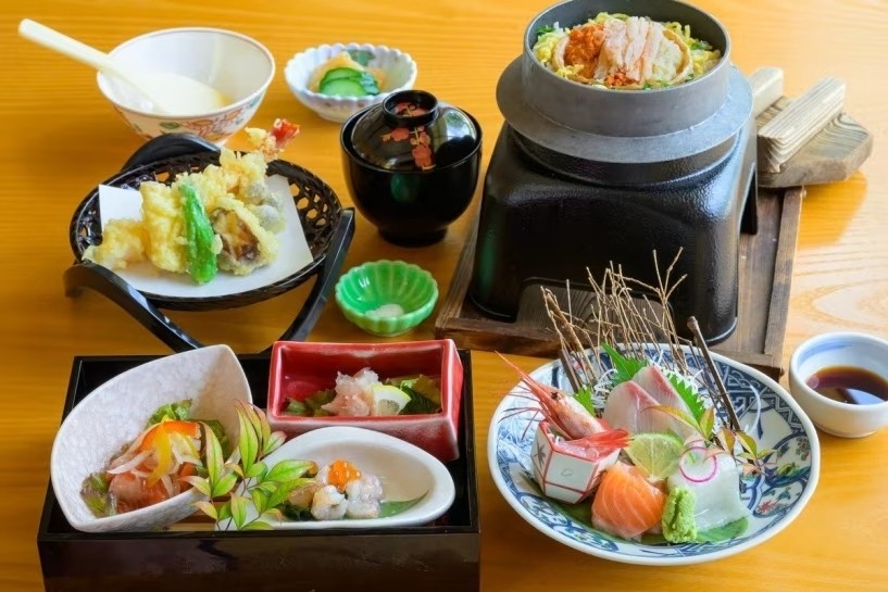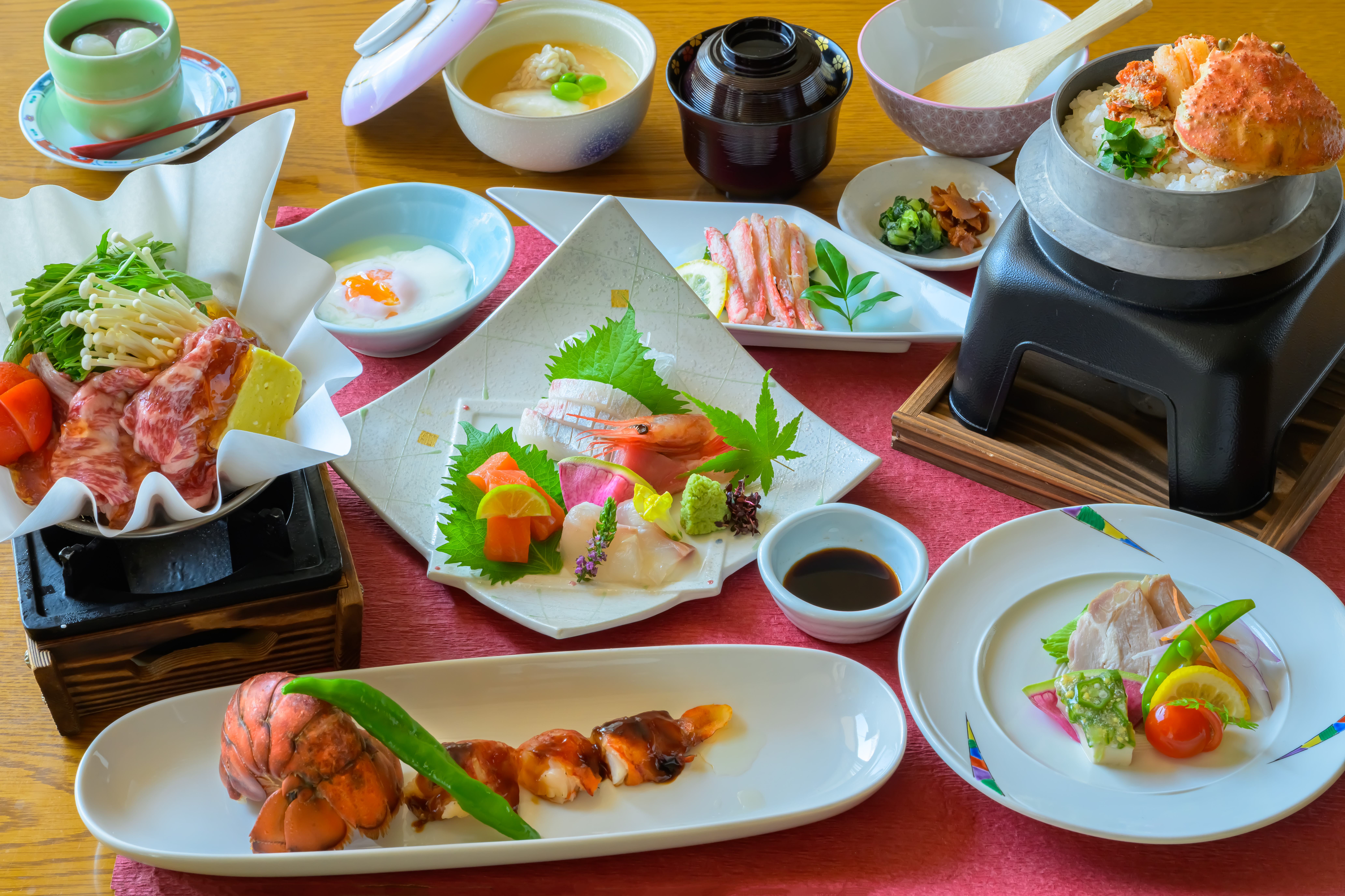 最寄り駅から徒歩2分の好立地にあり、観光の拠点として最適な宿です。福井の厳選した旬の食材を使ったお料理は、味だけでなく盛り付けも美しく、見る人を楽しませてくれます。